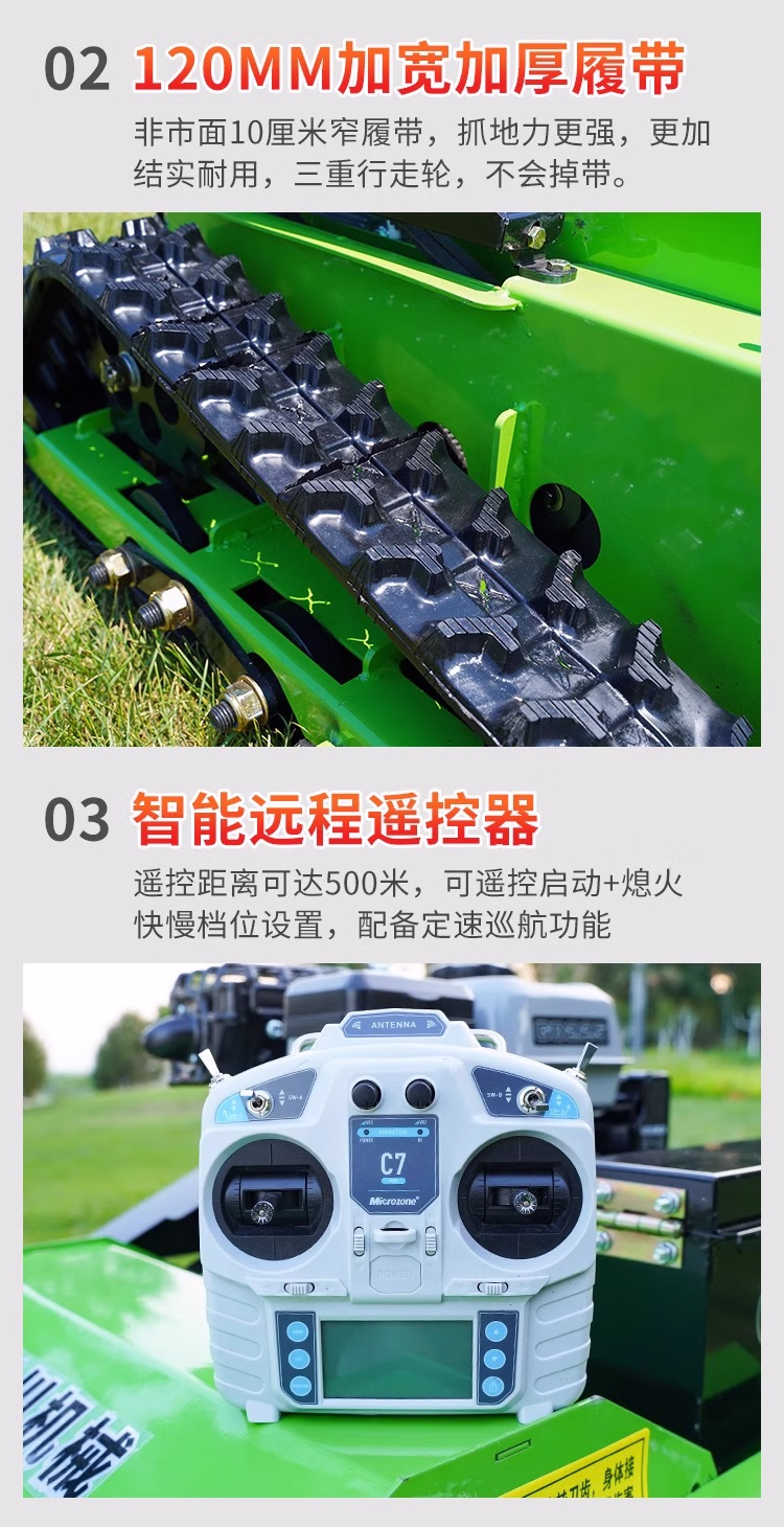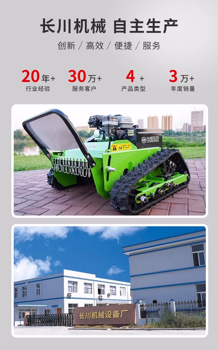 公司专注农林机械的生产制造,现拥有众多完善成熟的产品,主要包括垂刀遥控割草机,平刀遥控割草机,遥控打药机,树枝粉碎机等产品。其中遥控割草机有汽油动力和柴油动力,机器采用油电混合动力,都具备自身发电功能,垂刀结构适合山地果园开荒等崎岖不平的地形,不怕石头砖头树墩等平刀结构适合公园园林草坪的修剪整理,产品覆盖面广泛,应用领域众多。